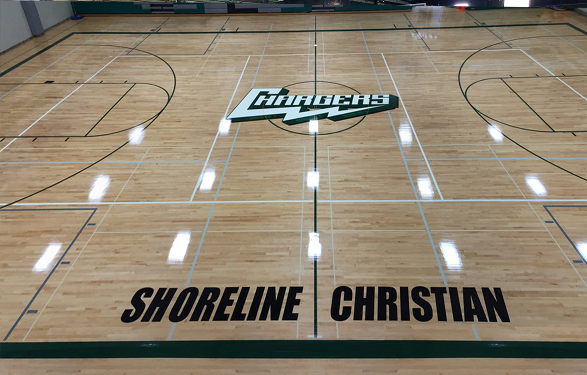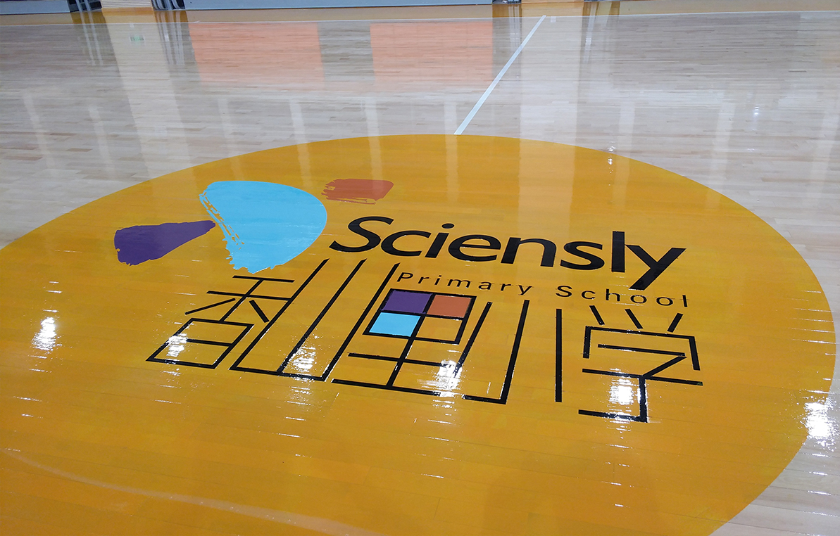 • 東莞市技師學院木地板涂刷彩漆及logo繪制-斯博科體育